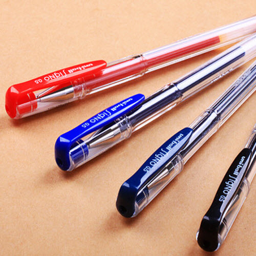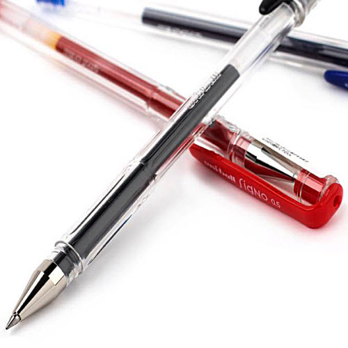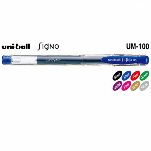 Bút gel Uni Ball Signo nét 0.5mm UM100 với các màu: dương, đen, đỏ. Mực bút nhanh khô, không nhòe, không lem khi gặp nước.