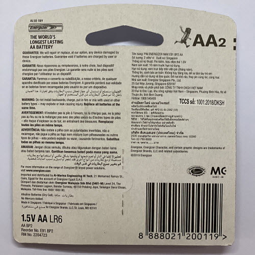 - Pin AA Energizer đến từ nhà sản xuất tiên phong trong lĩnh vực năng lượng pin kiềm không thủy ngân (Zero Mercury AA Alkaline Battery) an toàn cho môi trường.
