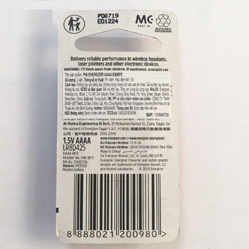 Pin Energizer AAAA được làm từ chất liệu Alkaline (kiềm ).