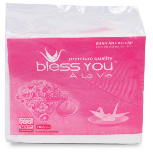Khăn giấy ăn cao cấp Bless You A La Vie được sản xuất trên dây chuyền công nghệ hiện đại và nguyên liệu cao cấp tự nhiên dai và thấm hút tốt, hoàn toàn không chứa hóa chất độc hại.