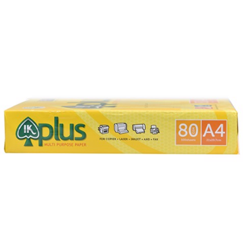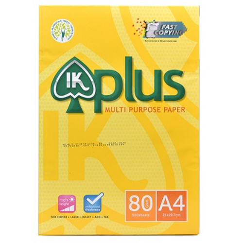 Giấy IK Plus A4 là sản phẩm chuyên dùng trong việc in ấn và photo. Giấy với kích thước A4, có độ trắng đẹp, thân thiện với môi trường và thích hợp với hầu hết các loại Máy in phun, Máy in Laser, Máy Fax laser, Máy Photocopy.