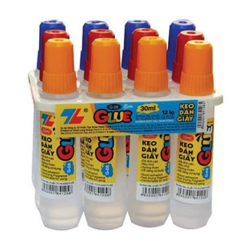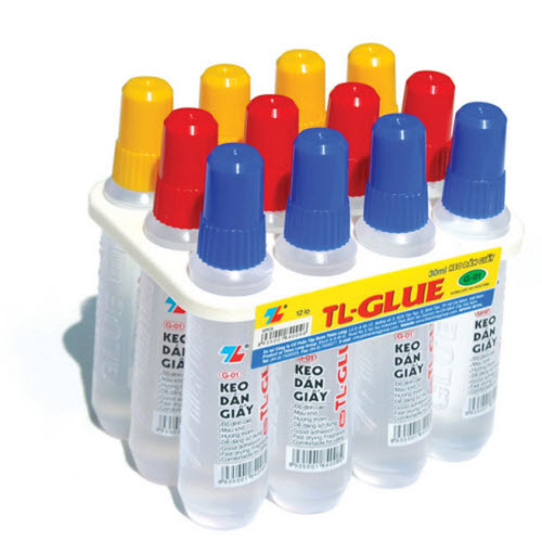 Lọ nhựa trong suốt nên sẽ nhận biết được keo bên trong. Keo không bị có mùi khi để lâu.