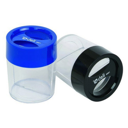 Hộp đựng kim kẹp Deli thiết kế hình trụ kích thước 5x8cm với không gian chứa rộng, bảo quản được nhiều ghim.