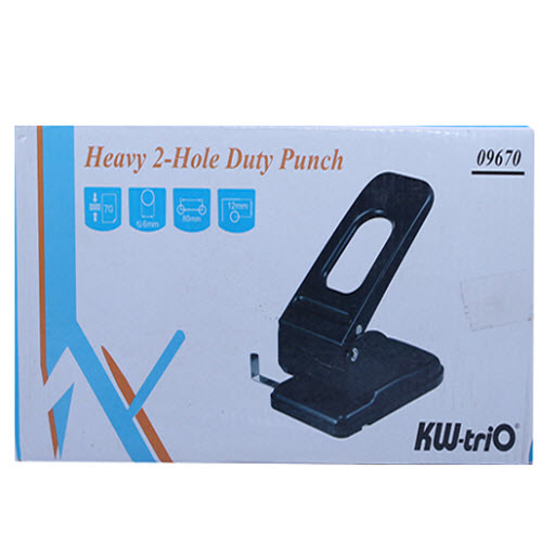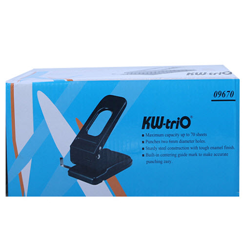 Bấm 2 lổ Kwtrio 9670 với thân kim loại, dạng ấn, đục 2 lổ, có thước canh chỉnh mép giấy, đế cao su chống trượt, lực bấm 70 tờ,
