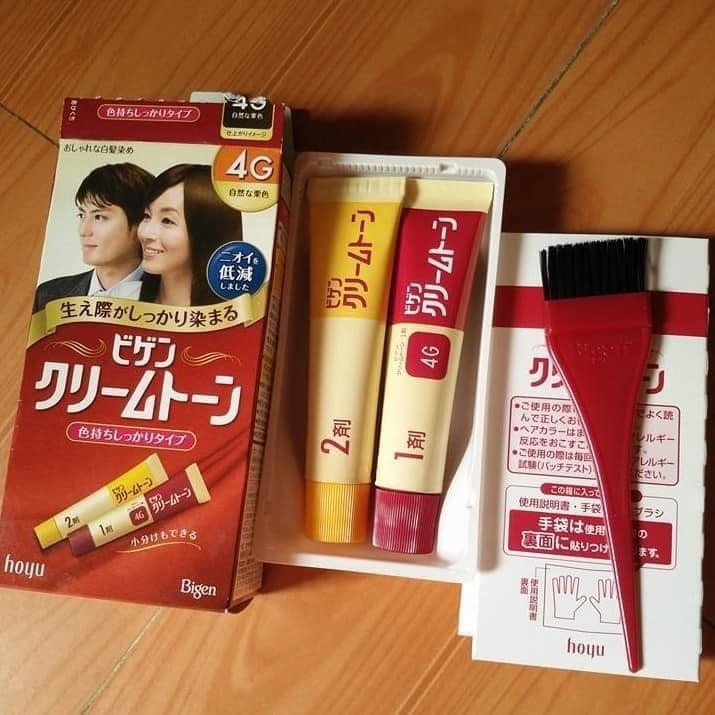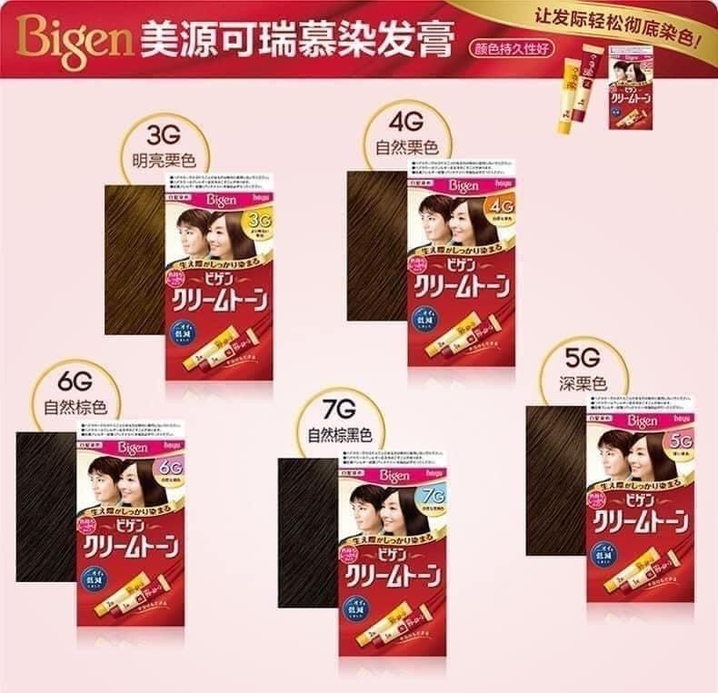 🌸 Bigen có dạng kem sử dụng đơn giản, màu sắc trẻ trung, bền màu. Thuốc chứa trong tuýp có nắp vặn nên nếu không dùng hết thì có thể để cho lần nhuộm sau hoặc để chấm chân tóc bạc.